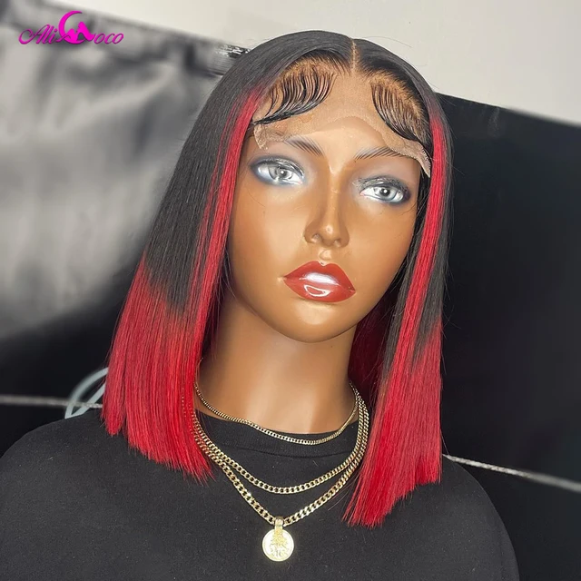 Black Red Wig Human Hair Red Bob Highlights Red Bob Lace Front Hair Highlight Red Aliexpress